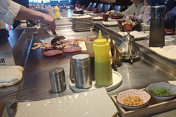 鐵板燒以熾熱的火焰與靈動(dòng)的翻炒,碰撞法式料理對(duì)食材本味的極致追求與細(xì)膩擺盤美學(xué) ,在滋滋作響的煙火間,層層解鎖法式料理的精致與浪漫,每一口都是對(duì)味蕾的溫柔款待,開啟一場(chǎng)舌尖上的法式綺夢(mèng)。廚師將烹飪過(guò)程演變?yōu)榫时硌?,如拋接食材、舞?dòng)廚具,展現(xiàn)高超廚藝,為食客帶來(lái)視覺與味覺雙重享受。