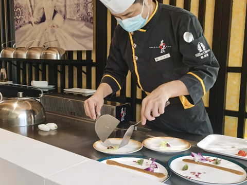 鐵板燒形式: 餐品主要在客人面前的大型鐵板上現(xiàn)場烹制,兼具觀賞性與美味。